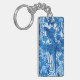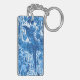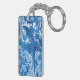 Keychain in an Illustration based on Walter Crane's 'Macaw' pattern for William Morris studios. A macaw / wild parrot in an exotic jungle setting - digitally enhanced and coloured in indigo blue and white