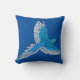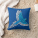Throw pillow patterned with an Amazon Parrot in flight - cerulean blue and white against a deep cobalt blue background - digitally enhanced photography