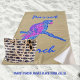 Vivid, graphic drawing, of a Tropical parrot, perched on a brand-new displayed, in an exotic, island pattern, in fuschia, red, turquoise, blue, yellow, white, and black.