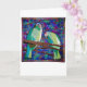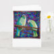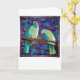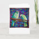 This quilt was based on a snapshot (shown on the card back) of my red-lored Amazon parrots Rosita (left) and Loren (right).
