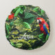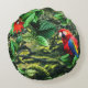 Parrot scarlet macaw in jungle with flowers round cushion