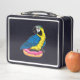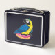 This is a standard metal lunchbox that appears to work just fine. We designed this box ourselves with an uploaded photo and custom text on the front and back. It looks absolutely beautiful except the front of the lunchbox is not centered like it shows in the photo. The print borders don't align with the inset flat part of the box where the preview photo online showed it perfectly centered in there. The back looks nice and centered though.