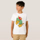 100% cotton so perfect for summer, It is a nicely designed t-shirt, the fabric is soft and the seams finished well, the body of the t shirt has no side seams. I bought a medium size for my two grandsons, aged 9 and 8 it will be slightly big on them but I would rather that than too small