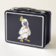 This is a standard metal lunchbox that appears to work just fine. We designed this box ourselves with an uploaded photo and custom text on the front and back. It looks absolutely beautiful except the front of the lunchbox is not centered like it shows in the photo. The print borders don't align with the inset flat part of the box where the preview photo online showed it perfectly centered in there. The back looks nice and centered though.