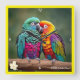 This captivating design features two beautifully coloured parrots perched gracefully on a branch. The vivid hues and intricate details of the parrots bring energy and charm, while the serene setting evokes a sense of tropical tranquillity. "Original Image was generated by Meta AI. AI generated artwork. Licensed under CC BY-SA 4.0."