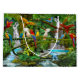 A tropical rainforest with beautiful waterfalls and jungle foliage provides a safe sanctuary for these colourful parrots in paradise. Photo realistic, this digital oil painting accentuates nature’s best images of our feathered friends.
