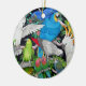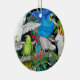 Original fine art design of colourful pet parrots from macaws to cockatoos, budgies and more by illustrator Carolyn McFann of Two Purring Cats Studio on a quality holiday ornament for parrot fans.