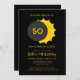 This invitation makes a bold statement with its black background, gold text, and partial solar eclipse design, featuring the moon partially covering the sun for a striking and mysterious effect. The number 50 takes centre stage, shining bright just like the birthday star!