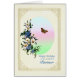 A beautiful floral birthday card for a partner. A lovely bouquet of blue and white flowers with a brown butterfly in flight. The picture has a delicate golden frame.