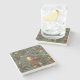 The coasters are gorgeous, a quality feel and heavy weight. They look like a precious archeological find. A rustic stone juxtaposed with a modern floral black and white print. I like the way the print goes slightly imperfect on the cut stone edges giving them a kind-of natural beauty.