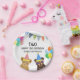 original drawing by Komila Y. Cute bear and lion cub wild party animals illustration birthday paper plates. Customisable
