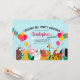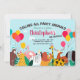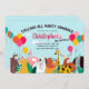 A colourful, fun, invitation to a child's birthday celebration featuring animal characters wearing party hats. The animals include an: elephant, deer, giraffe, lion, zebra, flamingo, leopard and bear. (<a href='https://www.freepik.com/free-vector/animals-theme-template-vector-illustration_3374804.htm'>Designed by Rawpixel.com</a>). <br/><br/>The card is easy to customise with your wording, font, font colour and choice of paper types.<br/><br/>Not exactly what you're looking for? All our products can be custom designed to meet your needs at no extra charge.<br/><br/>Simply contact us at heartfelthelper@gmail.com<br/><br/>Coordinating products available: