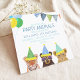 Original drawing by Komila Y. Cute tiger, bear and lion cub wild party animals illustration birthday invitation.