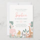 Calling all party animals invitation perfect for any age features playful and modern safari zoo animals with pink and green accents.