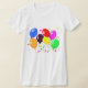 Its party time or at least that is what this design suggests. This design has a number of colourful party balloons set on a colourful background. It really does show that a great part is in store. This party balloons design looks great on this womens t-shirt. Perfect for yourself or as a gift