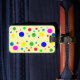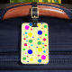 Make your luggage stand out on an airport carousel with unique tag designs! Cheerful polka dot circles in a riot of colours, including yellow, green, turquoise, blue, red, orange and pink, are the theme of this joyful, festive luggage tag. The back has more polkadots plus your personal information. All text can be customised.