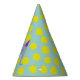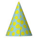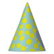 A bold and bright citron yellow and aqua blue dotted party hat with a party elephant is a fun addition to any kid's safari themed birthday celebration.