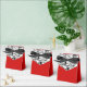 Party favour box shown in red with a cute moustache and hats print. Customise this item or buy as is.