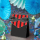 Party favour box shown in black/red striped with a black accent ribbon. Customise this item or buy as is.
