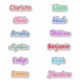 Looking for the perfect party favour that’s fun, personalised, and memorable? Our custom name sticker sheet is the ultimate party favour that every kid will love! Imagine the joy on their faces when they see their very own name on a vibrant, fun sticker! Our sheets feature 12 editable name stickers, so each guest at your party can feel truly special. You can also edit the sheet to have one name in 12 different fonts and colours.