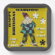 Personalise the occasion and guest of honour's name on these cool paper party plates featuring IconDoIt's super happy, super fun clown design created w/ a colour palette from the Italian Renaissance incl. a Kingdom Gold background.