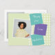 These whimsical thank you postcards feature a place holder for two of your favourite photos with colourful posty notes with polka dots in the background. The second photo, (optional) is on the back of the postcard.