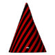 This is a stylish birthday party hat to wear for a party. It features red and black stripes.
