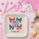 This design features a 4th of July party theme "Party in the USA" with red and blue bows on pastel blue and pastel pink background. This product can be easily personalised. If you need help with the customisation of the product or need matching products kindly please contact me via Zazzle.