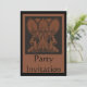 Black and Terracotta party invitation with an antique Egyptian capitol motif ready for you to personalise
