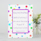 This invitation is printed on both sides and is fun, colourful and of course can be customised. These invitations have brightly-coloured spots and dots printed on both sides. The front has a white area for your personal message which is framed in purple. Choose your font and colour of font. These will be a fun addition for a child’s birthday party. There's no pink in these so they can be used for a boy or girl.