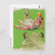 Classic PinUp card showing a cute girl calling wrapped in a towel, painted by Al Buell (1910-1996)