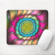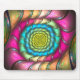 Mouse pad design from "Party Melt," an Apophysis fractal by Susan Wallace. Copyright © 2008, Susan Wallace. Rainbow spiral in bright neon shades of pink, green, turquoise and yellow with reflections of a repeating pattern.