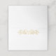 This folded name place card is shown in white with a elegant style gold leaf scroll print. card has a gold coloured inside.