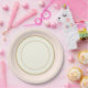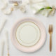 A special occasions or everyday day paper plates designed to look like china plate in design. Decorated with an ivory background with a new shade of Coconut-a blush colour rim and a coordinating inner trim colour.