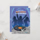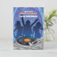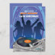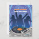 A dance party invitation for teens and adults. This exciting design features three silhouette figures in motion with blue vibrations and stars in the background. In the foreground we see a record playing on a DJ's turntable.