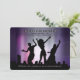 A trendy invitation featuring three people's silhouettes against a city skyline and warm shades of background colours. (Freevector.com - party people). The card is easy to customise with your wording, font, font colour, paper shape options and choice of six paper types.