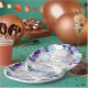 WEDDING PAPER PLATES | Flowing fluid abstract ink swirls appear as intensely coloured smoke or vapour - in hues of ultra violet purple, indigo and teal. Gold frame overlay with translucent smoky fill is where your details are placed. This is a unique abstract design created for the BarefootBride™ by © WhimsicalArtwork™ Customise text, font style, colour and size. We created this template is to make it easy for you to personalise with your own information. This is part of a complete Wedding Stationery Suite with matching wedding, baby shower and other event stationery designed by © WhimsicalArtwork™.