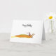 A birthday card with an illustration of a slug going to a party.