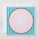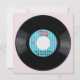 Square pearl shimmer invitation with an image of a 45 rpm record with a 50s-style blue-on-blue striped record label on a background of soft white polka dots on pink. Record label reads "Party Time." Song title is "Bop 'Til You Drop (At My Party)." The back has a pink circle for your party details on a blue stripe and pink polka dot background. See matching envelope, favour tag and square sticker. See the entire Nifty 50s Invitation collection in the INVITES | Invitations section.