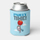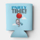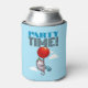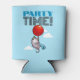 Use "Personalise this template" to change the "PARTY TIME!" text, text changes are reflected on both sides. A fun can cooler featuring a cute opossom in a striped party hat, floating by on a big red balloon while blowing a star spangled party blower.