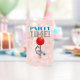 Use "Personalise this template" to change the "PARTY TIME!" text, text changes are reflected on both sides. A stylish glass featuring a cute opossom in a striped party hat, floating by on a big red balloon while blowing a star spangled party blower.