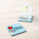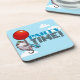 Hard plastic coasters for your party featuring a cute opossom in a striped party hat, floating by on a big red balloon while blowing a star spangled party blower. Use "Personalise this template" to change the "PARTY TIME!" text.