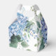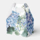 Party favour box is shown in a pretty elegant blue hydrangea floral watercolor print.