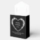 This party favour box is shown in an elegant black and white colour with a diamond sparkle accent in the front centre.