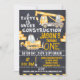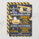 This party under construction first birthday invitation could be used for a different age. It features an excavator, tuck and brickwork on a chalkboard background. Great for a construction themed birthday party, this design also features a chalk-like font heading.