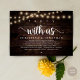 Mark the beginning of your forever with rustic elegance using our cottage and village string lights dark brown wood background themed, wedding elopement celebration invitation card, "Party with us". Perfect for couples extending their joyous occasion, this invitation exudes sophistication with a hint of playfulness, setting the stage for a memorable event. Adorned with a timeless modern script design theme, it adds a touch of refined charm to your festivities. Crafted by TeeshaDerrick, this invitation promises to beautifully capture your love story.