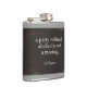 The flask itself is fine. It’s a cheap flask, obviously bought in bulk, however am prepared to overlook that. Given that it is a personalized item, I would have liked to have seen gift boxing instead of the generic packaging. Terrible printing, and/or quality. It’s a cheap, tacky vinyl. It is not cut straight and is also applied in a way that it is overhanging the bottom, causing the glue to catch on items and it will eventually roll and tear, damaging the wrap.