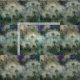 Fabric with white pasque flower seed heads pattern