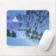 A 3D fantasy landscape full of shimmering snow and magical fairy lights. A row of silvery shining lamps lights the trail through a snowy mountain pass hemmed in by steep rocky cliffs. The sparkling snow-covered path is hemmed in by dark fir trees. On the far side of the cleft a translucent glowing fairy castle awaits the enchanted traveller on his journey to fairyland.