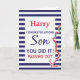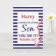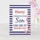 This classic british navy passing out parade card is a great way to congratulate your son on their success and all the hard training they have experienced so far in their military career. Navy blue & white stripes with a ship's anchor and wording with the name of the naval graduate included.